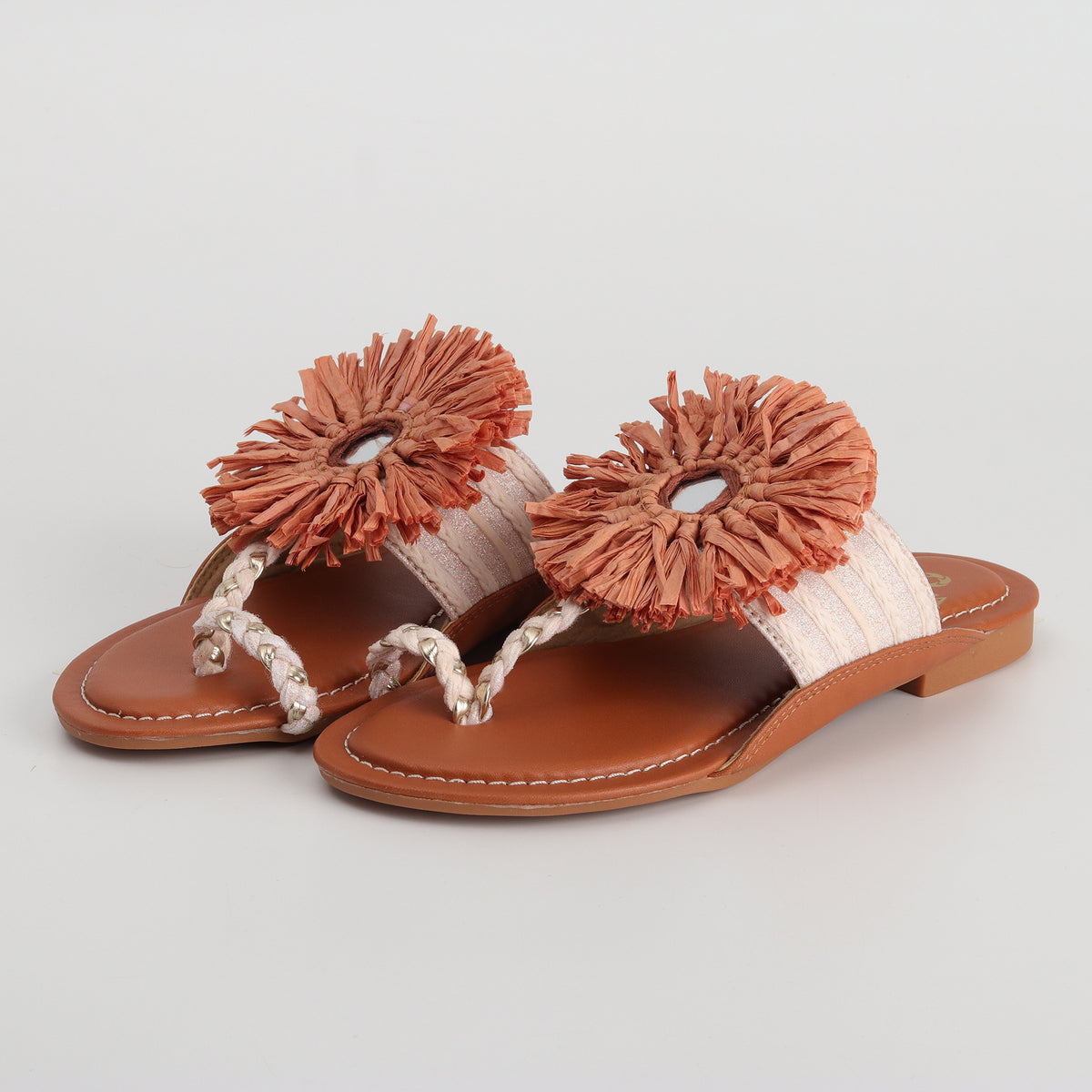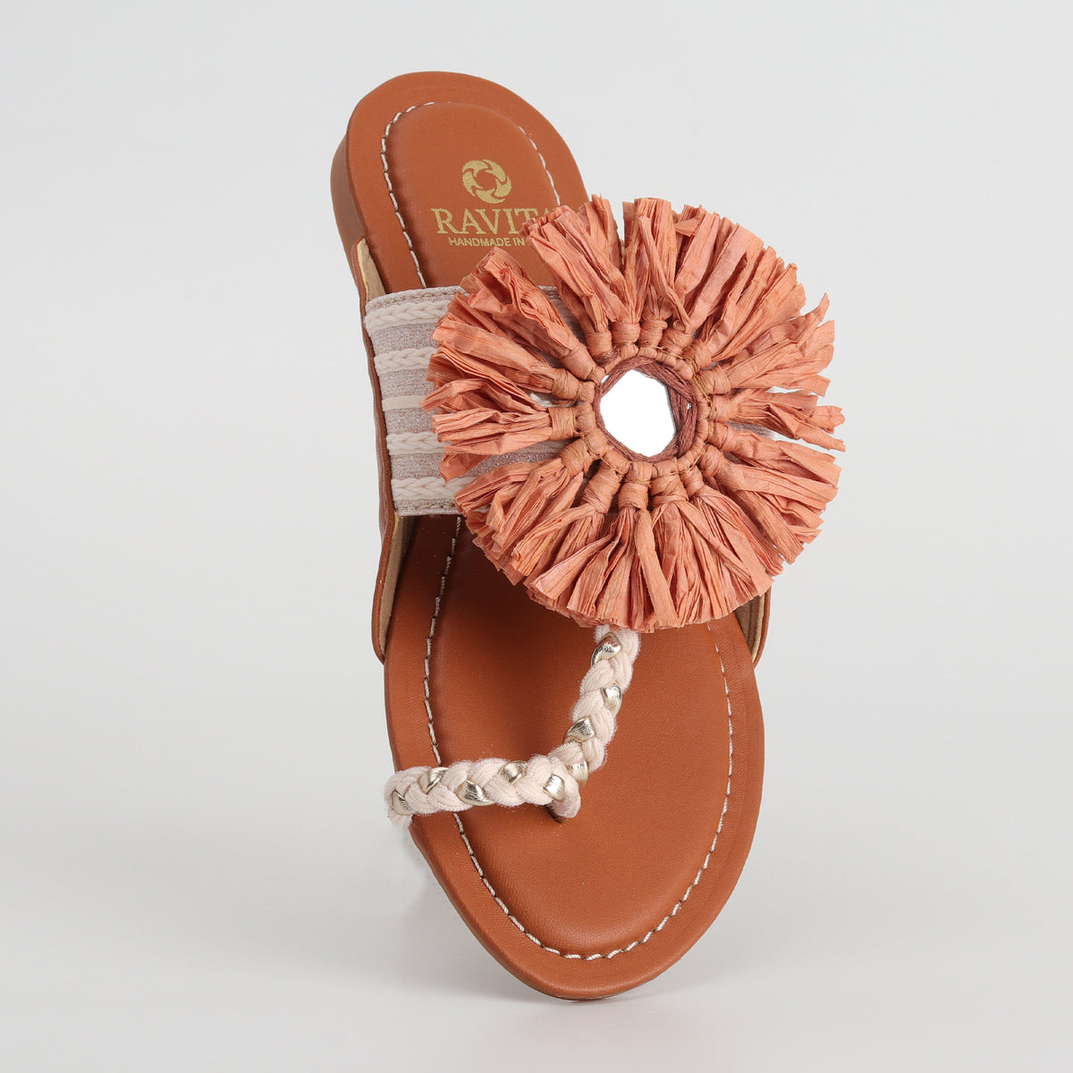 Women’s Kolhapuri Chappal with Surya Style Embellished Mirror - Casual & Party Wear Flats